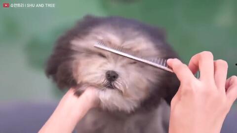 2. 眼睛周围:用梳子将眼睛周围的毛发梳成束,然后沿着毛发生长的方向剪。注意,不要剪到狗狗的眼睛。