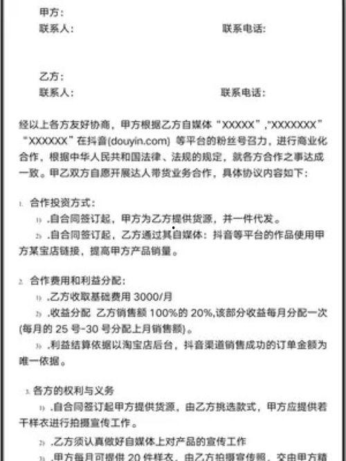 3. 内容规范:为了保障短视频内容的质量,合作协议中会对内容进行规范。比如,禁止发布违法违规、低俗、暴力等不良内容。